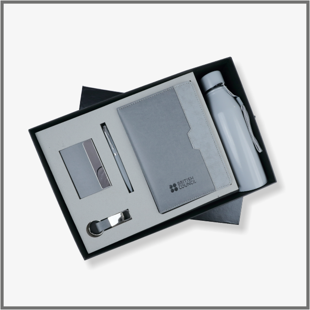 | Combo Set of Notebook, Pen, Bottle, Keychain & Visiting Card Holder |
