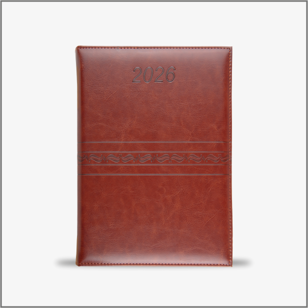 BROWN PU COVER WITH DIARY BLOCK DEBOSSED.