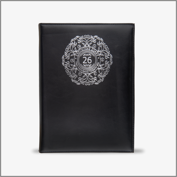 BLACK PU COVER WITH DIARY BLOCK DEBOSSED.